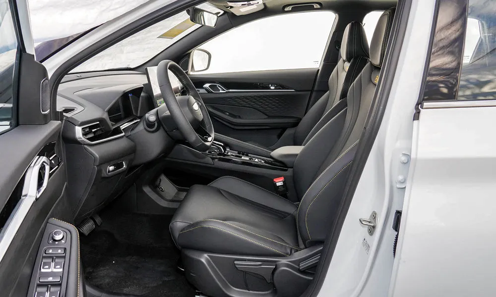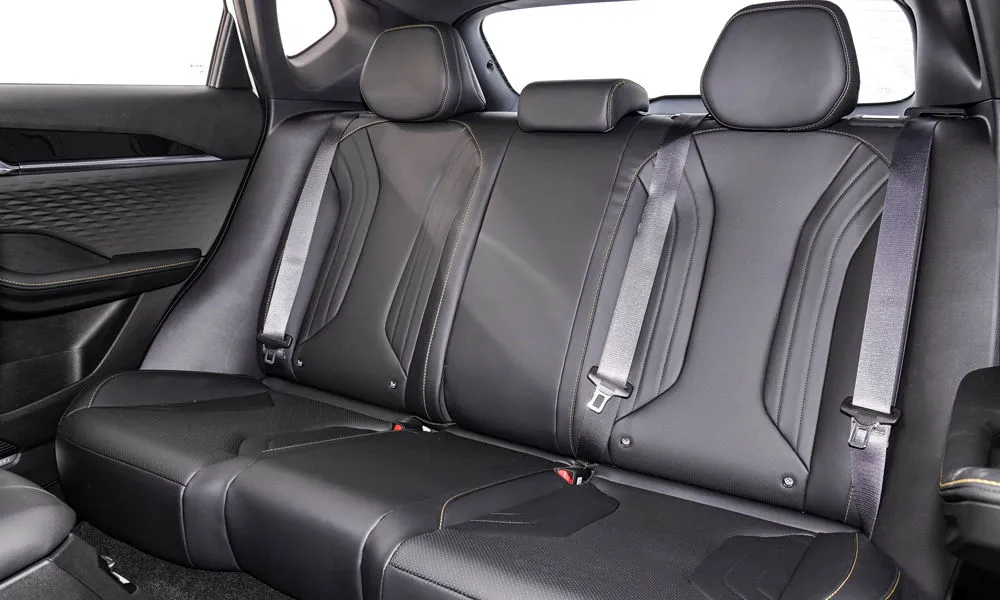 • Отделка интерьера и сидений экокожей чёрного цвета с контрастной строчкой красного цвета